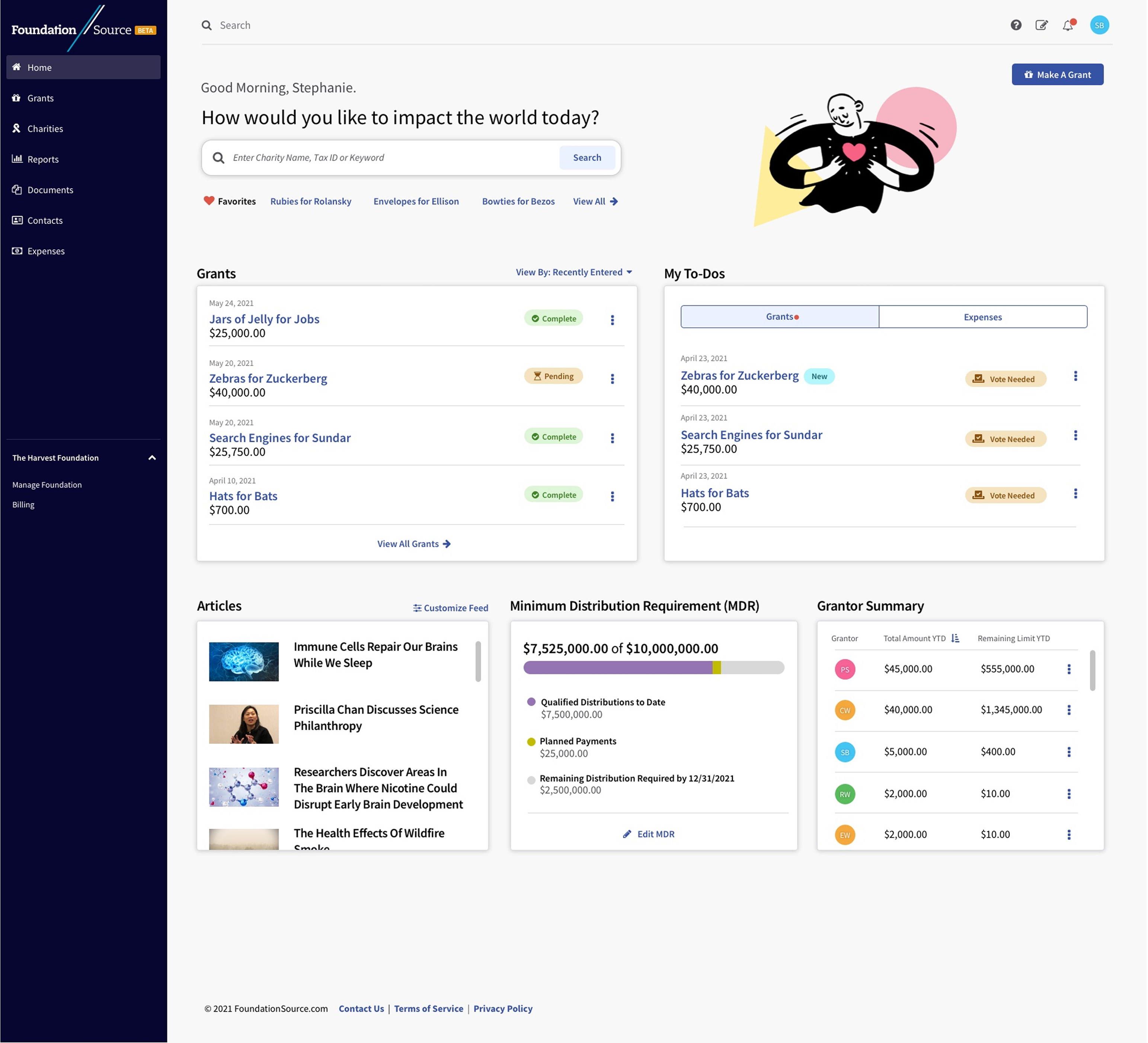Design a first-of-its-kind SaaS platform that empowers philanthropic teams to manage foundations efficiently, by translating 20 years of legacy foundation management software into a modern, intuitive experience.