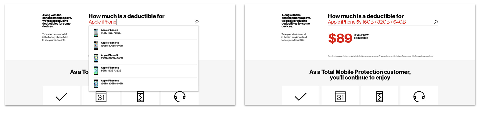 I used Verizon’s established UI patterns and visual assets to quickly prototype and test page layouts that communicated complex updates in a simple, direct way. I also developed the content strategy, creating a clear value proposition that highlighted what customers were gaining, not just what was changing.